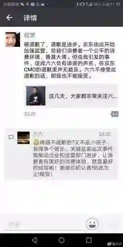 对于京东的道歉,六六回应称:“真高兴看到世界每天都在向我们期望的样子迈进!中国进入前所未有的高能时期,霸级企业面临的困惑和管理难题也是其它国家或历史时期尚未给出答案的。严格要求加宽容等待,是我们共同的心声。”