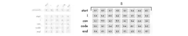 每个单词的 8 个数字类似于一般神经网络中的权重,用于映射不同单词之间的关系。