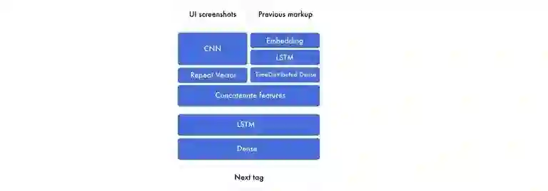 对我来说,LSTM 比 CNN 更难理解。当我展开所有的 LSTM 后,它们变得更容易理解。Fast.ai 在 RNN 上的视频非常有用。另外,在尝试了解特征的原理之前,请先关注输入特征和输出特征本身。从头开始构建词汇表比缩减巨大的词汇表要容易的多。包括字体、div 标签大小、hex 颜色值、变量名称和普通的单词。大多数库被创建来解析文本文件而不是代码。在文档中,所有内容都由空格分隔,但在代码中,则需要使用自定义的解析方式。可以使用在 ImageNet 上训练的模型来提取特征。这可能看起来违反直觉,因为 ImageNet 几乎没有 Web 图像。然而,与从头开始训练的 pix2code 模型相比,这样做的损失要高出 30%。当然,我也对使用基于网页截图的预训练的 inception-resnet 类型的模型很感兴趣。