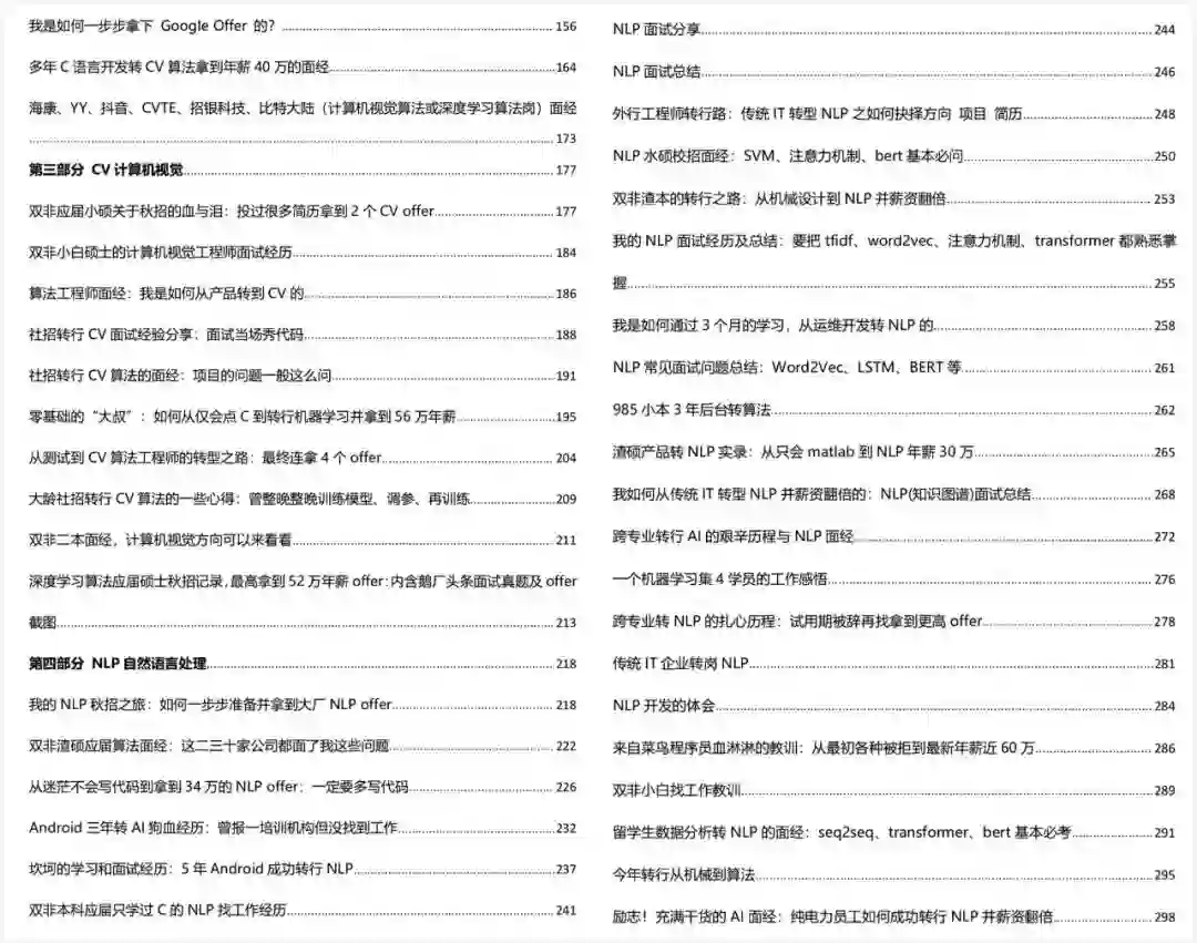 本书由北京七月在线公司最新编写,涵盖计算机语⾔基础、算法和⼤数据、机器学习、深度学习、应⽤⽅向 (CV NLP 推荐⾦融风控)等五⼤章节,不仅有详细的原理解读还有大量的代码分析。对正在准备找工作的同学非常有用。