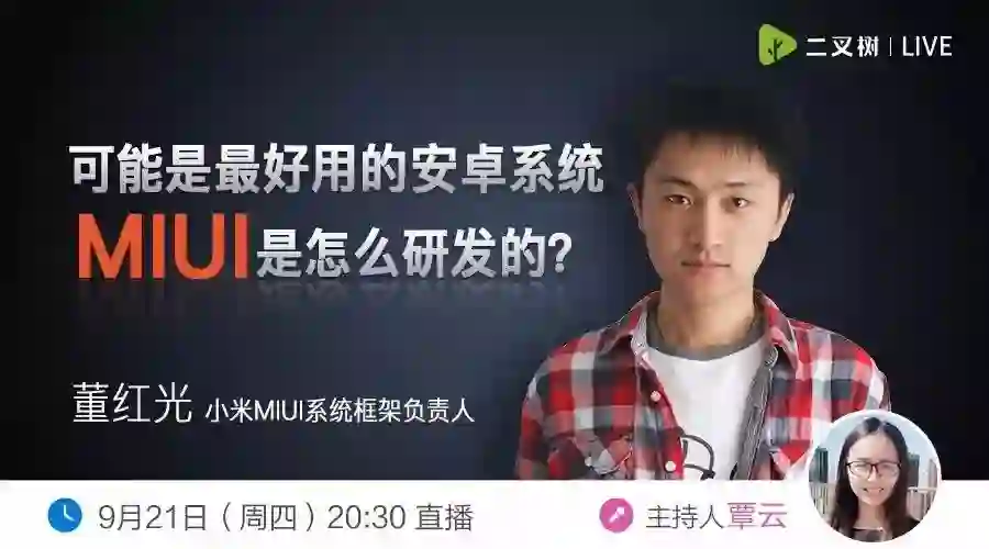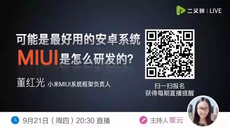 今晚八点半,我们请来了小米 MIUI 系统框架负责人做分享嘉宾,