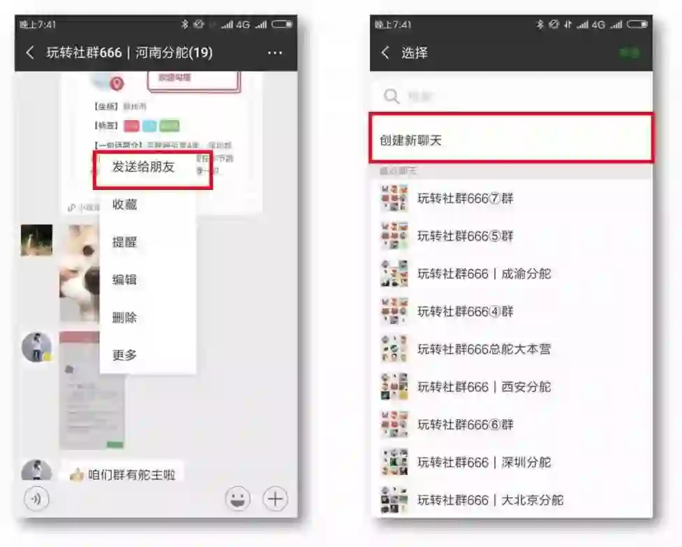 1、建群如果只是为了给人发文件,这样操作最快:长按任何文字、图片和链接,点“转发”—创建新的聊天—选3个人就创建一个新群。