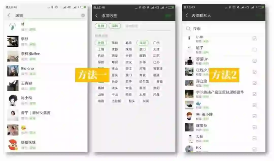 14、如果要把全是地域的好友拉一个群,可以采用搜索城市筛出同城的人,给对方备注好标签,然后建群后选择该标签的人拉入进群。也可以在建群时,直接选择搜索城市拉其入群。