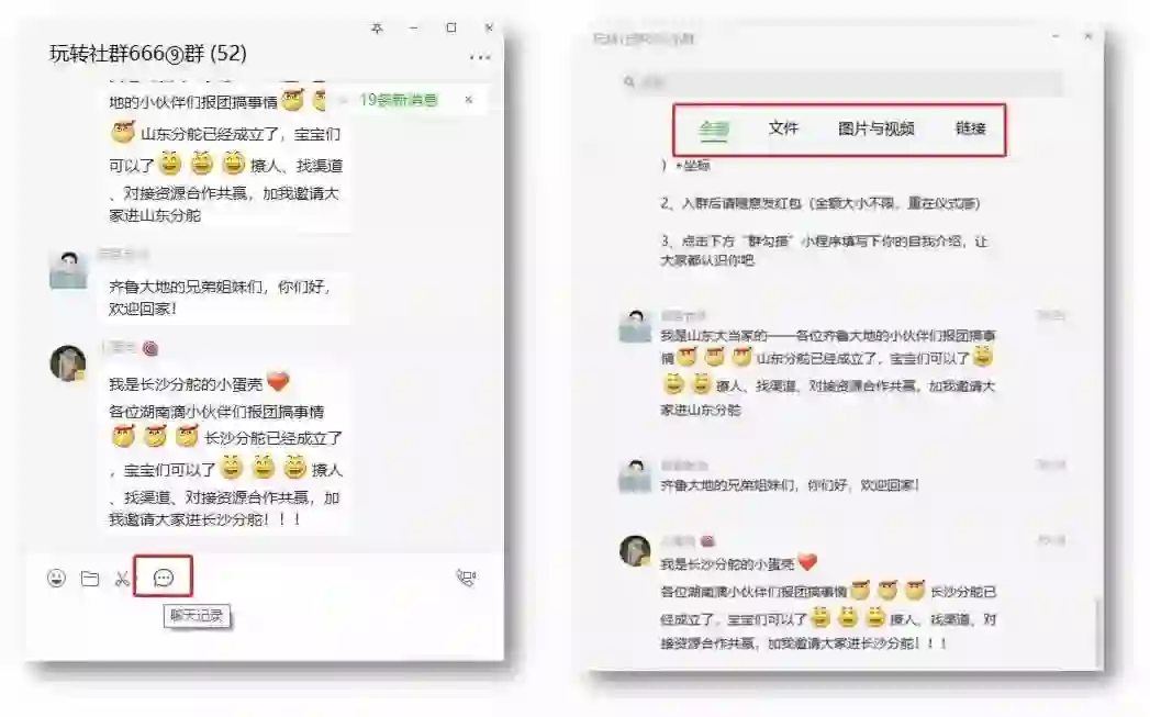 19、如何快速精准地查找群聊天记录?群里聊天记录很多,而且很多都是无效信息,如果一条条看或者想快速找到自己要看的内容怎么办,