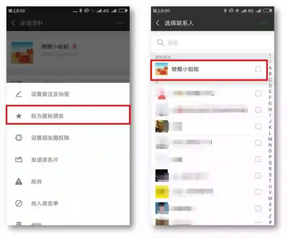 12、如果每次建群都要拉固定的那几个人进群,将对方设为星标朋友,每次拉人进群时,他们就排列在最前,无需搜索。