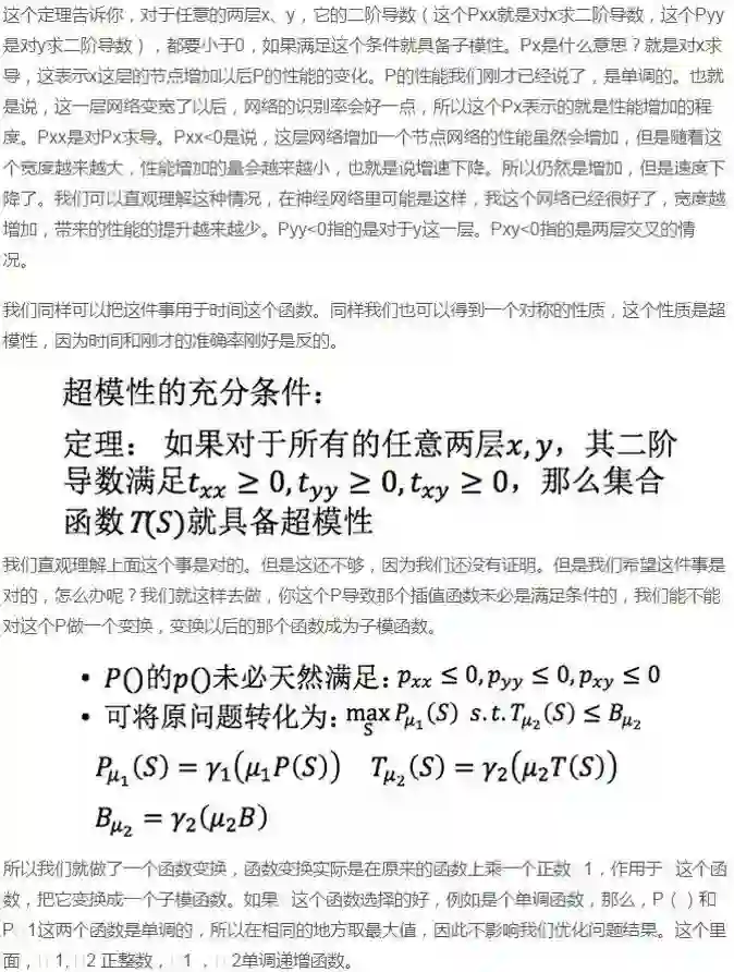 子模函数有一个很有意思的性质:假如Fi是子模函数,这个λi>0,它的正的线性叠加仍然是子模函数。就是在正的这种线性组合的意义上它是封闭的。