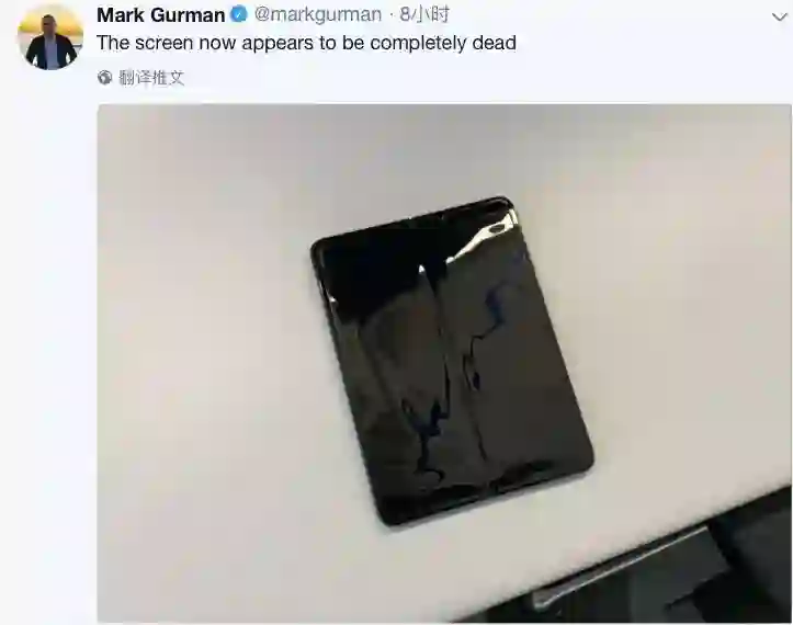北京时间今天凌晨,Mark Gurman在社交媒体上说:仅仅两天,我的Galaxy Fold就坏掉不能用了。不知道这是个案还是普遍情况……