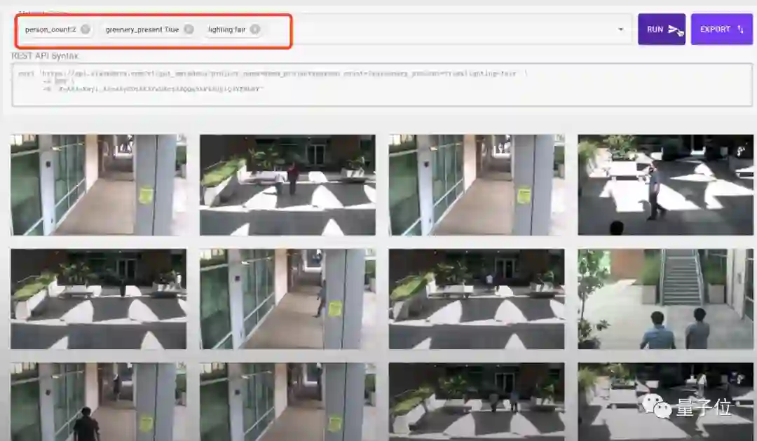 可以组合查询,比如找“有绿色植物、光线晴朗、出现俩人”的画面,就可以输入这样三个参数: