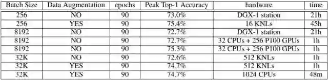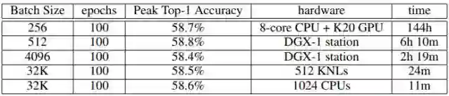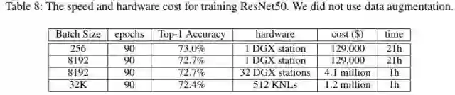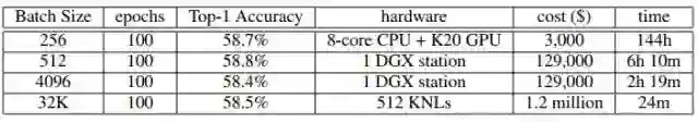 他们将批量大小扩展到32k,使用英特尔KNL,硬件费用120万美元。