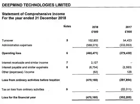 谷歌母公司 Alphabet 在其盈利报告中没有公布单个业务部门的资产负债表,但根据最近向英国公司法院登记处提交的文件表明,2018 年 DeepMind 的税前亏损增加到 5.7 亿美元,收入为 1.25 亿美元。
