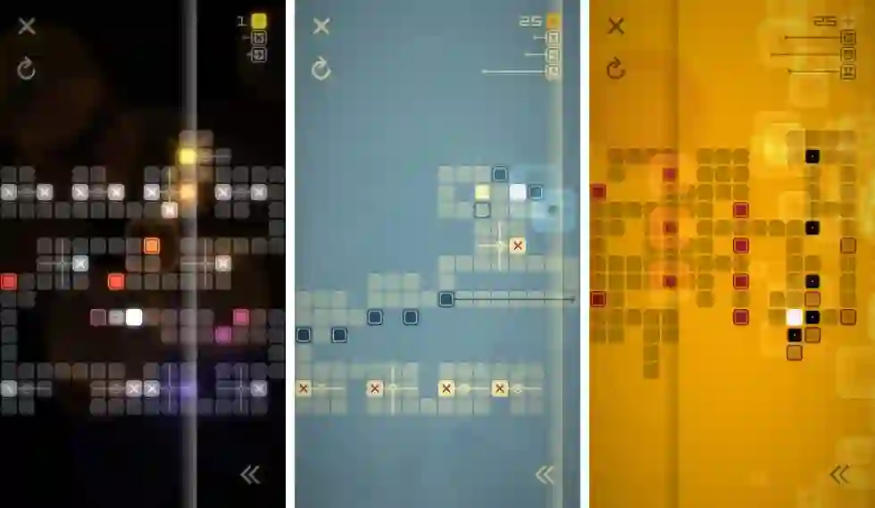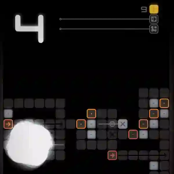 非常值得一提的是 Resynth 的音乐风格,它不是流行乐,也不是抒情舒缓的风格,而是与 Planet Quest 那样节奏感十足,让你洗脑扭摆的打击乐。游戏中的银线挨个拨动箱子和开关,像极了手指拨动各种乐器的设计。当然随着关卡的深入,游戏会变得越来越难,例如箱子推动的先后顺序、道具的数量增多,都让音乐节奏变得复杂。好在屏幕右下角提供了一个撤销按钮,随时可以利用它取消错误的步骤。