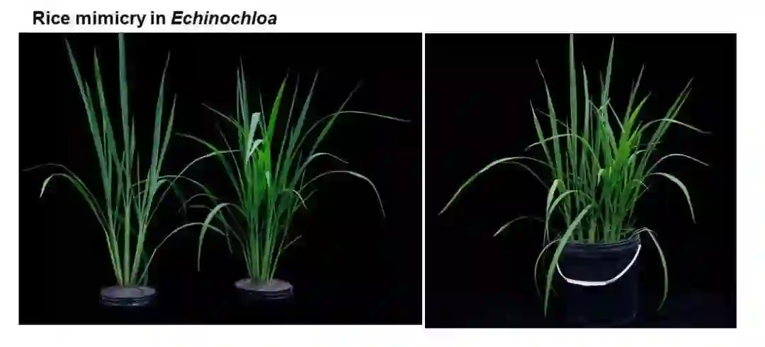 稗草(Echinochloa crus-galli )是田间头号杂草,为了除掉它,人类已经努力了几千年。浙江大学农业生物与技术学院樊龙江教授团队与中国水稻所等单位合作研究最新发现,为了避免人类的“驱逐”,田间的稗草们竟学会了“伪装”。几千年来,它们与水稻越长越像,从原来松垮贴地的懒样子,进化出了今天亭亭玉立的模样。