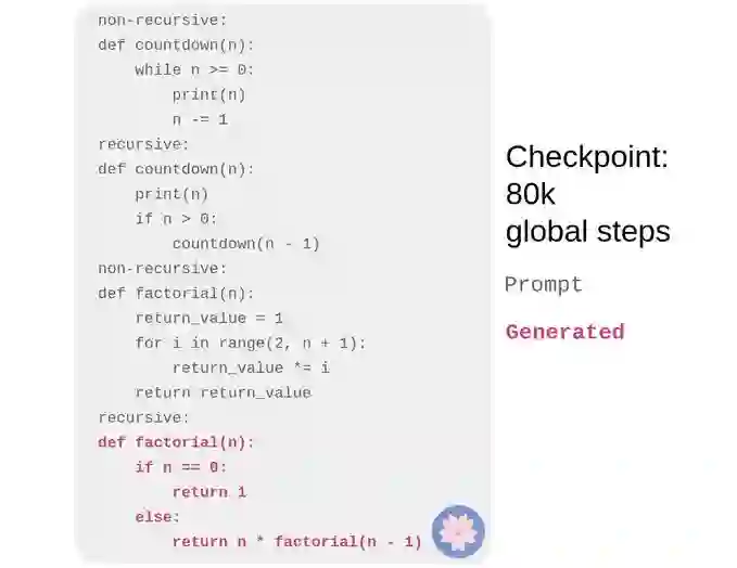 虽然最终模型还没有发布,但该模型的checkpoints已经展现了非常酷的效果,可以协助编程例如生成递归函数,纠正语法错误。每一个人都将会有无限的自由去探索大模型未知的潜力,这会是属于每一个人的一场大模型的“狂欢”。
