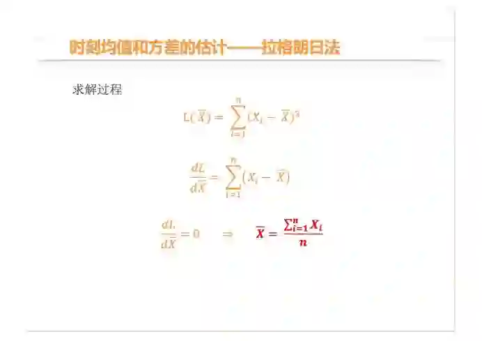先对方程求导,让导数等于 0,得到一个新的标红的公式,这个公式就是我们熟知的算数平均值的计算公式。