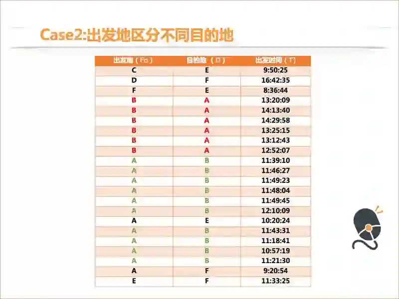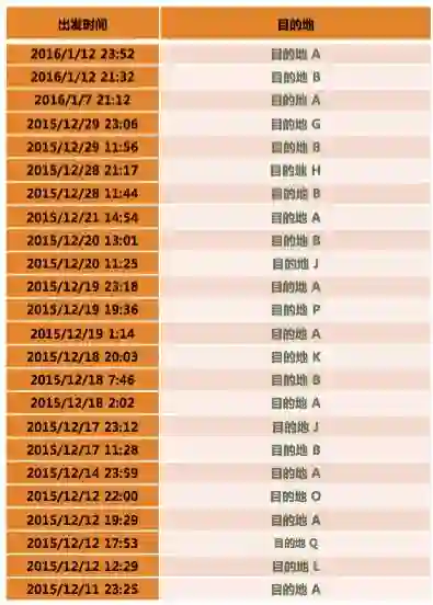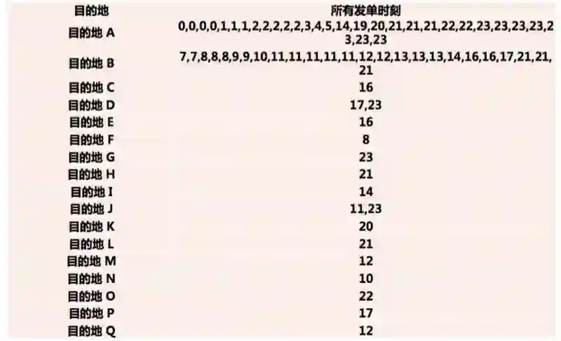 下面介绍下关键问题的求解。我们先看一个用户的数据,下表最左边一列都是用户的出发时间,右边是对应的目的地。