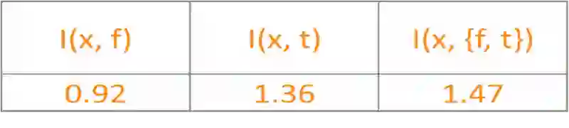 目的地和出发时刻的互信息是很高的,1.36。目的地和出发时刻、出发地这两个变量的联合变量的互信息是 1.47。我们能看到,对这个用户来说,即使增加目的地特征,信息增益也没有涨多少。