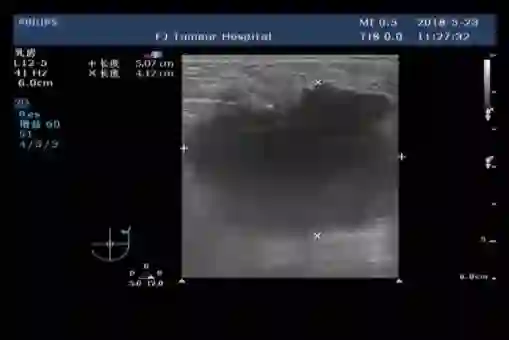 ▎疗效评估:B超(2018-05):左乳外上象限探及一低回声区,约5.5cm×5.1cm,形态不规则,边缘不整,可见成角、毛刺,周围可见毛玻璃改变,内部回声不均;左腋中下组探及数个低回声,大者约2.6cm×1.9cm,边界尚清,类圆形,皮髓质分界不清,皮质不规则增厚,淋巴结门消失;右乳及右腋窝未见异常。