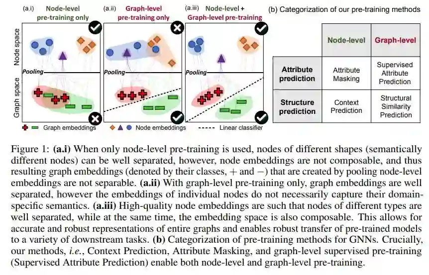 我们的策略成功的关键是在单个节点以及整个图的层次上预训练一个具有强表示能力的GNN,以便GNN能够同时学习有用的局部和全局表示。