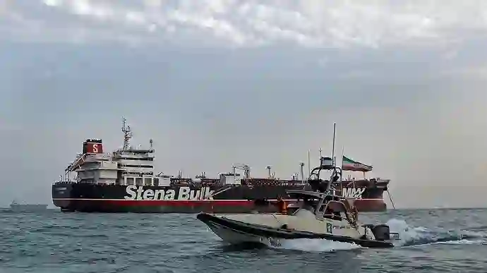 上个月,在伊朗阿巴斯班达尔,伊斯兰革命卫队在一艘被劫持的英国油轮周围巡逻。