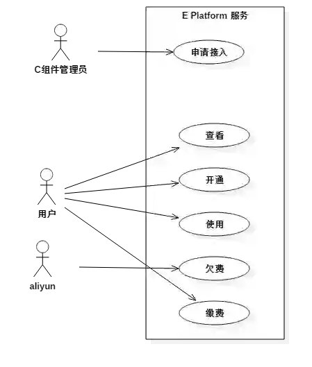 需求背景:某组件需要接入到 E 产品, 以按量计费的形式提供服务,并通过阿里云统一按流量收费;组件接入到 E 产品后,用户通过访问产品页面开通 / 暂停 / 使用组件