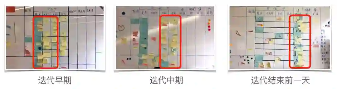 物理板与每日站会,很清晰地展现了当前迭代需要完成的工作,团队在需要完成的目标基本上达成一致。并且在每日站会的过程中,因为每日不断需要沟通的需求,团队能及时调整并更明确研发流程规划。