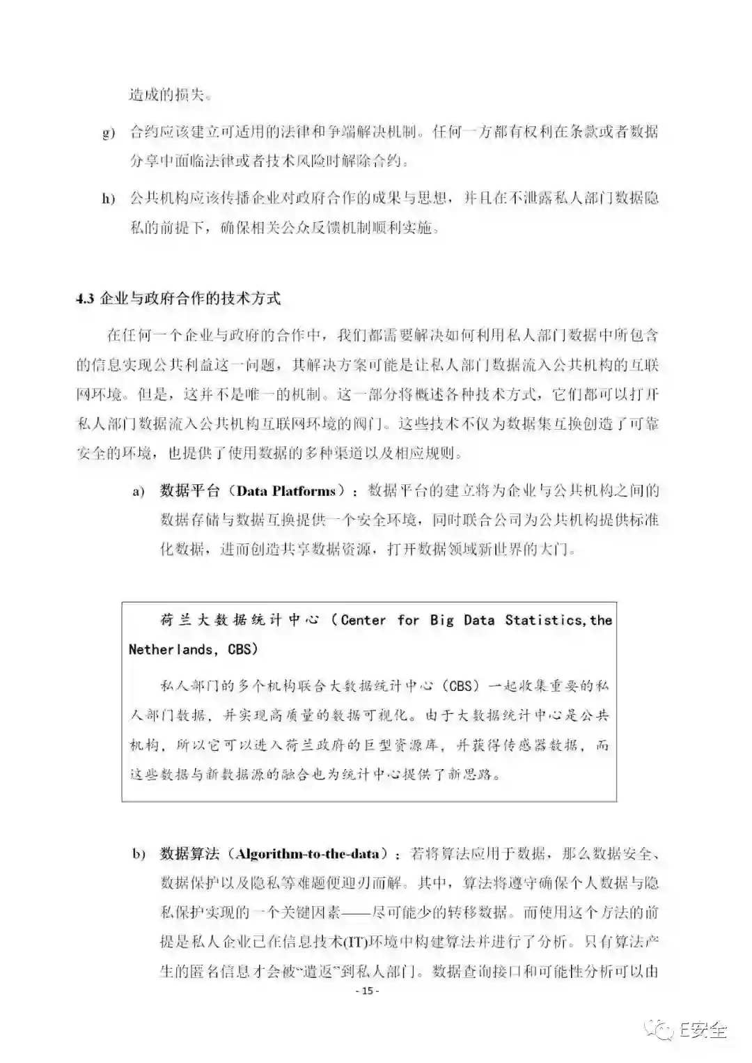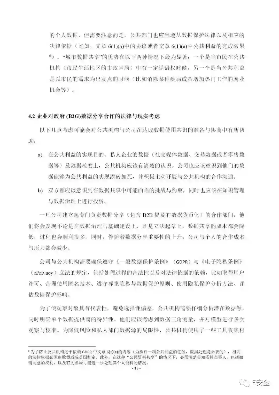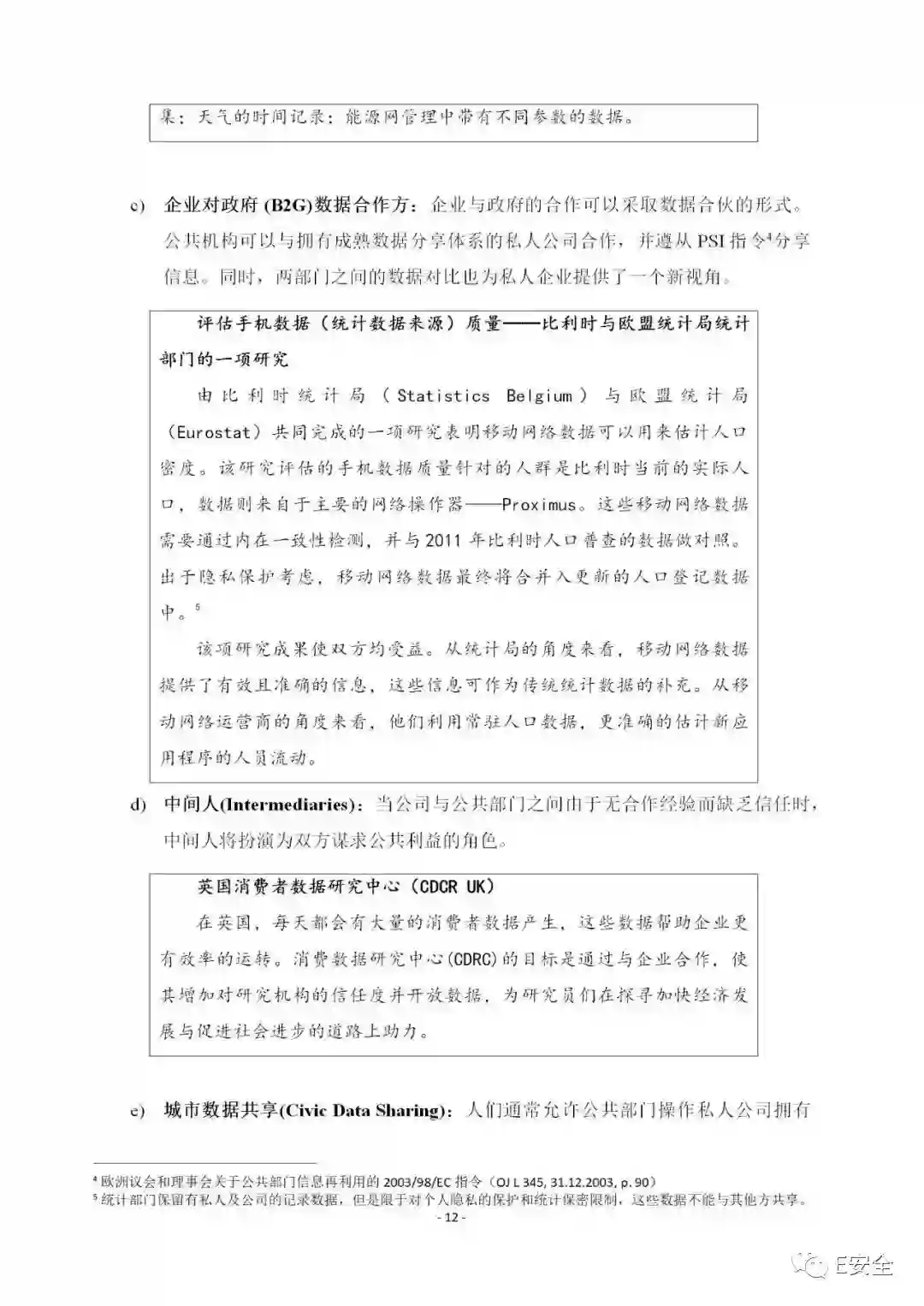 本文对企业对企业(B2B)与企业对政府(B2G)数据共享的主要原则和具体方法进行了讨论,包含概述、企业对企业(B2B)和企业对政府(B2G)数据共享的原则、企业对企业(B2B)数据共享——指南篇、促进企业对政府(B2G)数据成功合作——清单篇等四节,对我国数据流通共享有一定的借鉴意义。