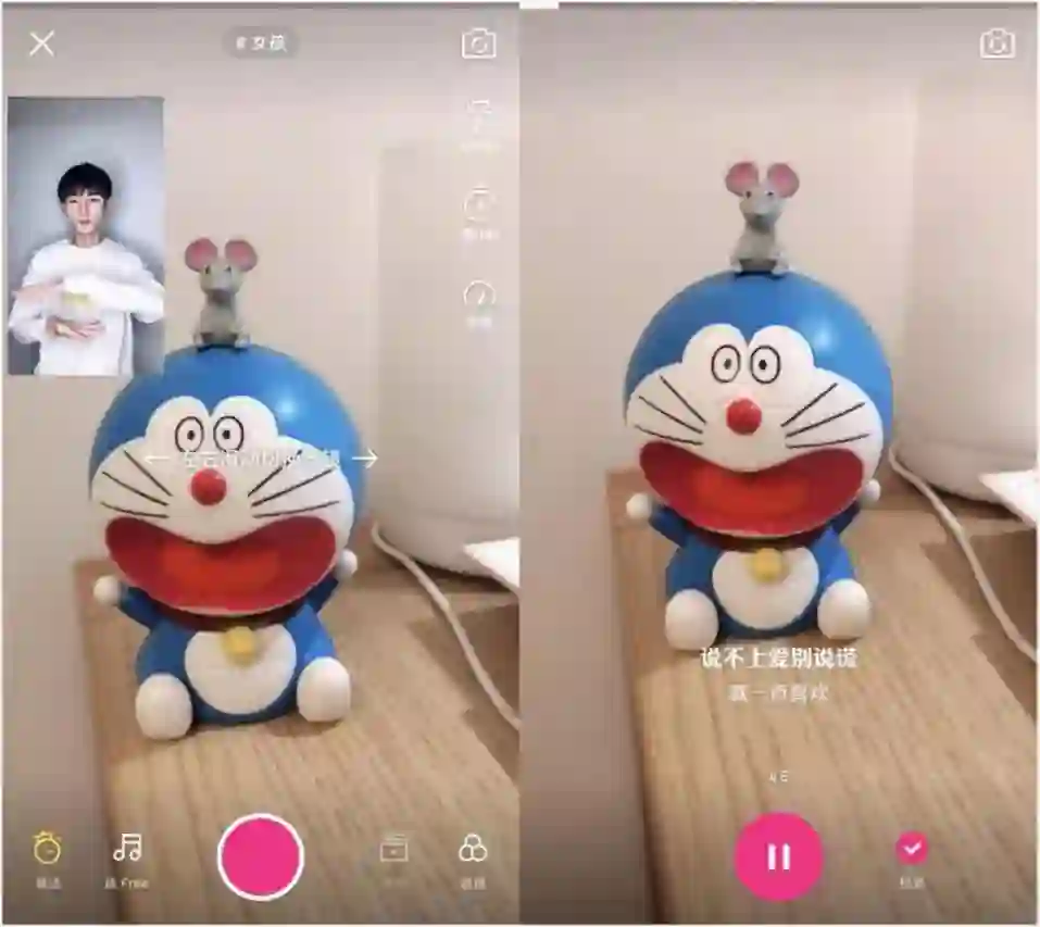 每个视频界面都可以点击“跟拍”进入视频录制,录制视频时可以直接使用原视频音乐,模仿原视频动作进行拍摄。