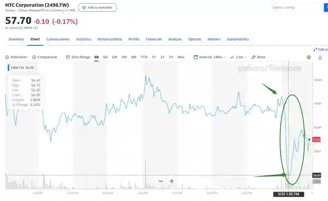 有意思的是,该机正式公布前夕,HTC 股价突然跳水。