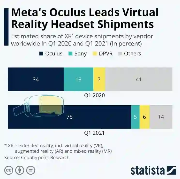然而好景不长,背靠 Facebook(现 Meta)的 Oculus 和后来被字节收购的 Pico 加入战局,推出一系列高性价比 VR 设备抢占份额。