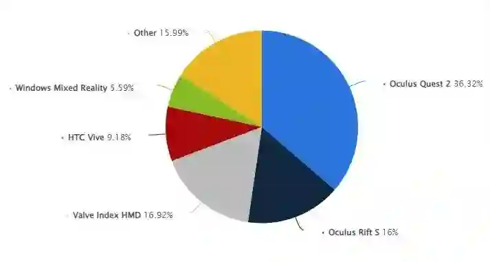 据 VIAR 数据,截至 2021 年 11 月,HTC Vive 在 VR 市场的份额仅有 9.18%,被身前的 Meta、Valve 拉开了不小的差距。