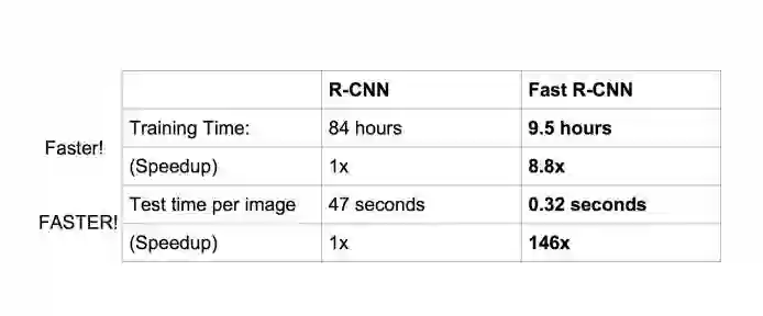 细心的同学可能看出来了问题,R-CNN第一步中对原始图片通过Selective Search提取候选框region proposal(2000个左右)之后,将每个proposal当成一张图像进行后续处理(CNN提特征+SVM分类),实际上对一张图像进行了2000次提特征和分类的过程。导致R-CNN检测速度很慢,一张图都需要47s。
