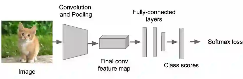 传统目标检测流程:1)区域选择(穷举策略:采用滑动窗口,且设置不同的大小,不同的长宽比对图像进行遍历,时间复杂度高) 2)特征提取(SIFT、HOG等;形态多样性、光照变化多样性、背景多样性使得特征鲁棒性差) 3)分类器分类(主要有SVM、Adaboost等) 从图像识别的任务说起 这里有一个图像任务:既要把图中的物体识别出来,又要用方框框出它的位置。这个任务本质上就是这两个问题:一:图像识别,二:定位。 图像识别(classification): 输入:图片 输出:物体的类别 评估方法:准确率