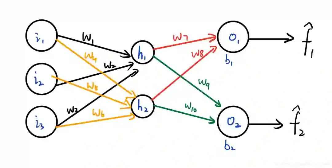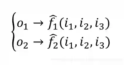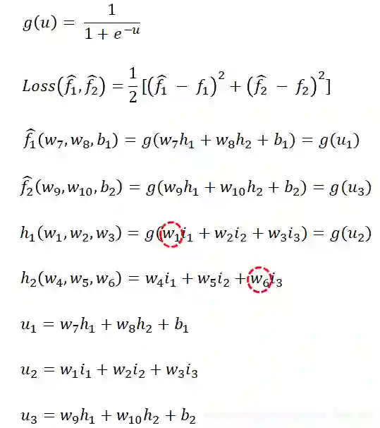 这个ANN只有4个神经元,分别是 。它输出两个目标函数,均是输入变量 的函数,分别由神经元 输出。可以记为
