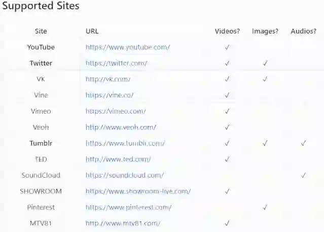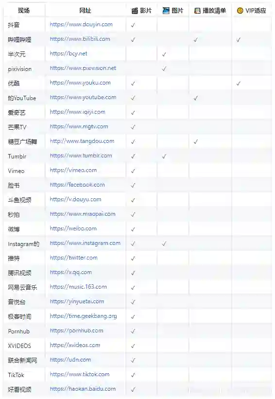 支持 YouTube、Facebook、网易视频、百度贴吧、哔哩哔哩、爱奇艺、酷狗音乐、秒拍、腾讯视频、企鹅直播、新浪视频、搜狐视频、土豆、优酷、芒果TV、快手、抖音、TikTok、知乎等几十种国内外知名视频网站视频、图片、音频下载,同时支持将网页视频导出至本地播放器进行在线播放,缓冲速度快,还免去了广告。