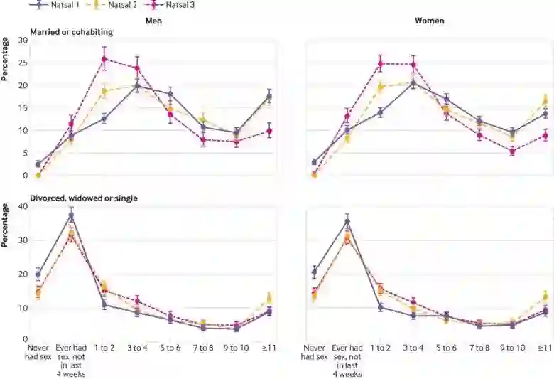 研究还发现,单身人群并没有出现这种程度的下降,这表明英国整体性行为频率降低的趋势主要是由于已婚或同居伴侣性生活减少导致的。