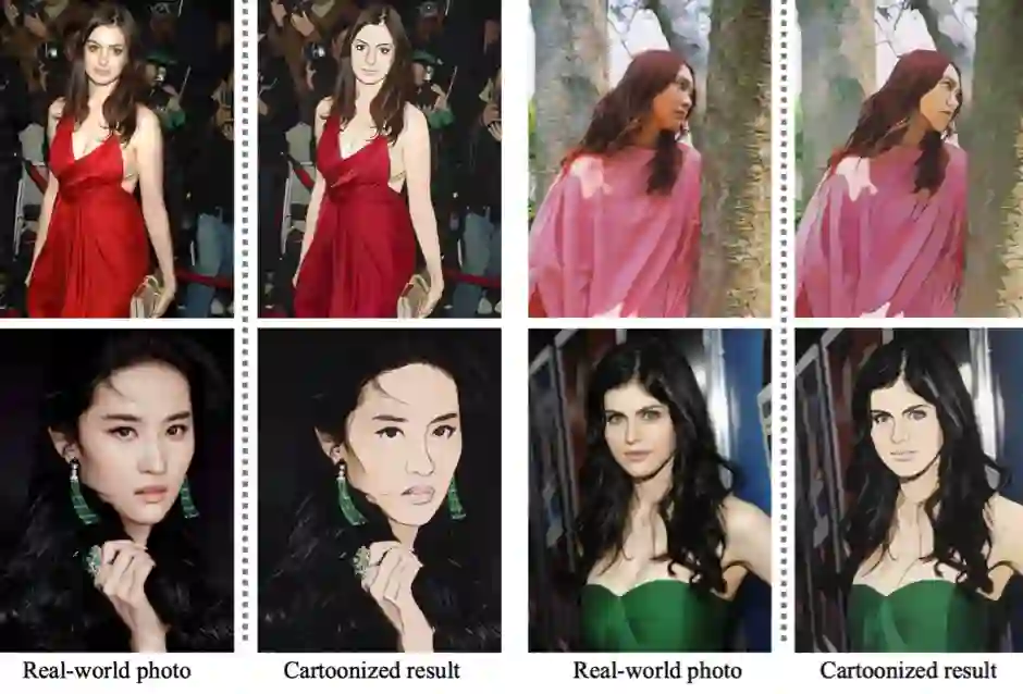 卡通是一种流行的艺术形式,且已广泛应用于各种场景。现代卡通动画工作流程允许艺术家使用各种资源来创作内容。通过将真实世界的图片转换为可用的卡通场景素材,创造了一些著名的漫画,该过程称为图像卡通化。