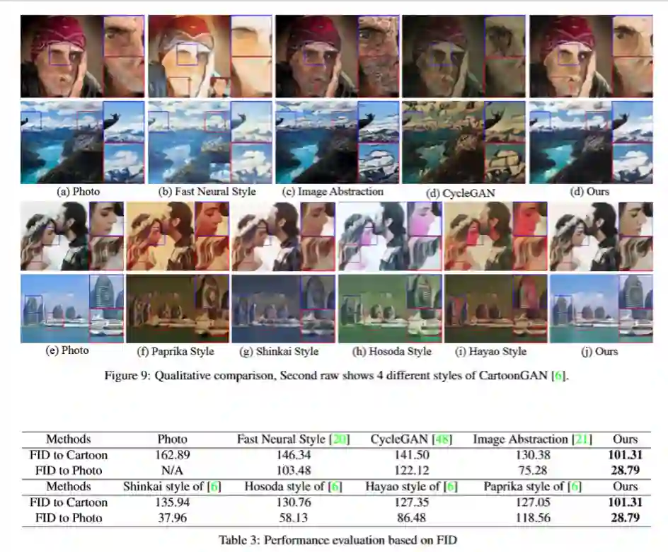实验结果表明,该方法可以生成色彩和谐,令人愉悦的艺术风格,清晰锐利的边缘以及明显更少的伪影。本文还显示,通过定性定量的实验和用户研究,本文方法是优于之前的最新方法。最后,本文进行了消融实验以说明每种表征方式的作用。最后,本文的贡献如下: