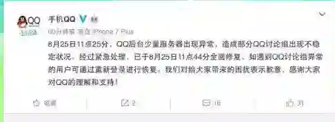 4.QQ讨论组出现大面积故障 腾讯回应:已紧急修复
