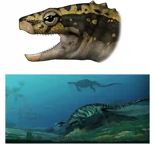 中国始喙龟(E.sinensis)头骨和生态复原(陈瑜绘)