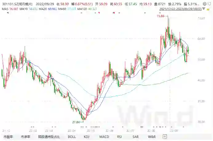 明月镜片(301101.SZ)股价走势