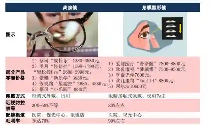 一方面,离焦镜无需与人眼直接接触,佩戴舒适且安全性较高,而且离焦镜性价比高,基本在1380-4580元之间,明显低于OK镜动辄上万的单价;