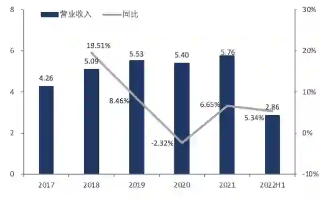 2017-2022H1明月镜片营业收入情况,单位:亿元