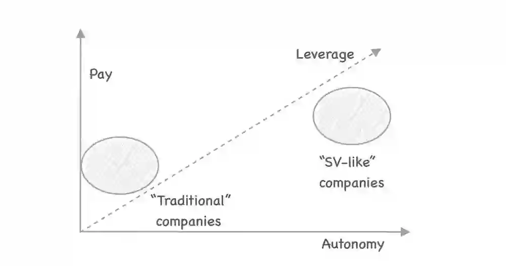 任何一家类似硅谷的公司,如果想要在工程师的报酬方面竞争,就必须创造高杠杆,以使这些工程师所带来的价值超过工资。这一杠杆可以通过规模和业务增长两方面来体现。在不必要的通讯、工具等方面减少浪费的时间,就会增加这种影响力。给工程师足够的自主权,让他们对企业作出(超额)贡献,就是保持这种杠杆效应的方法。