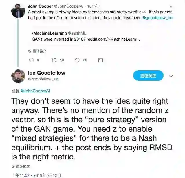 众所周知,生成对抗网络(GAN)是由Ian Goodfellow 于2014年提出的。但是,一篇reddit热帖披露早在2010年OlliNiemitalo即提出了同样的概念。Goodfellow回应道:没有提到随机 z 向量,只是纯策略版本。