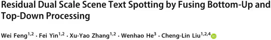 本文简要介绍来自中国科学院自动化所近期的一篇论文“Residual Dual Scale Scene Text Spotting by Fusing Bottom-Up and Top-Down Processing”,此论文已被IJCV录用,它主要解决了自然场景图像中任意形状文本的端到端识别问题。