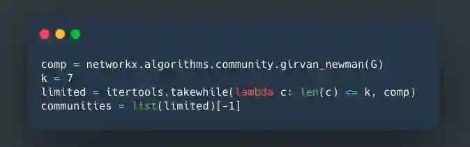 使用 Girvan-Newman 算法划分社区。NetworkX 示例代码如下