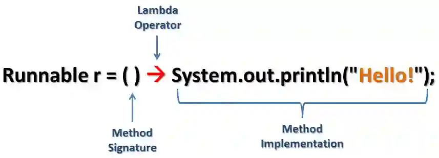 设计匿名内部类的目的,就是为了方便 Java 程序员将代码作为数据传递。不过,匿名内部 类还是不够简便。 为了执行一个简单的任务逻辑,不得不加上 6 行冗繁的样板代码。那如果是lambda该怎么做?