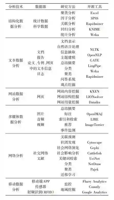 表1 大数据分析技术(按数据类型分类)
