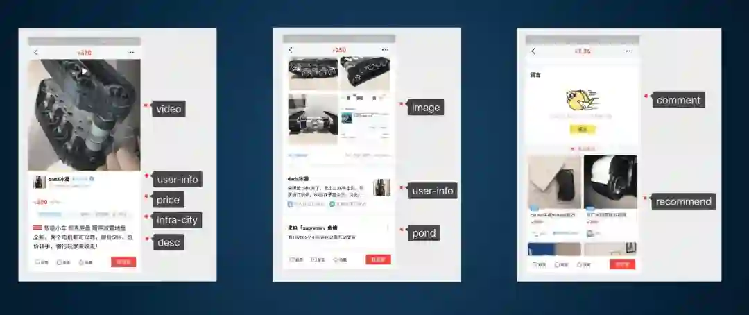 上层负责组装,下层负责实现, 同时会有一个插件提供, 便于我们快速填写。以闲鱼的详情场景为例的组装:
