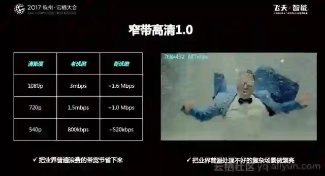 在云栖大会视频多媒体分论坛上,阿里巴巴高级专家江文斐也表示:“我们沿着人眼视觉模型这条路接着往下走,省下来更多人眼看不到的信息,减少带宽浪费,于是,我们有了窄带高清2.0”。